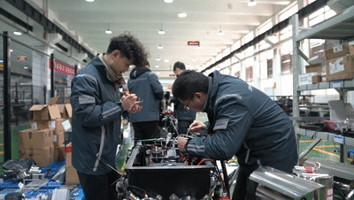 在位于重庆两江新区的七腾机器人工厂模拟测试区内,工程师们正紧张地进行着机器人的调试工作,不时调整参数、优化程序,以确保每一台机器人都能以最佳状态投入实际应用。